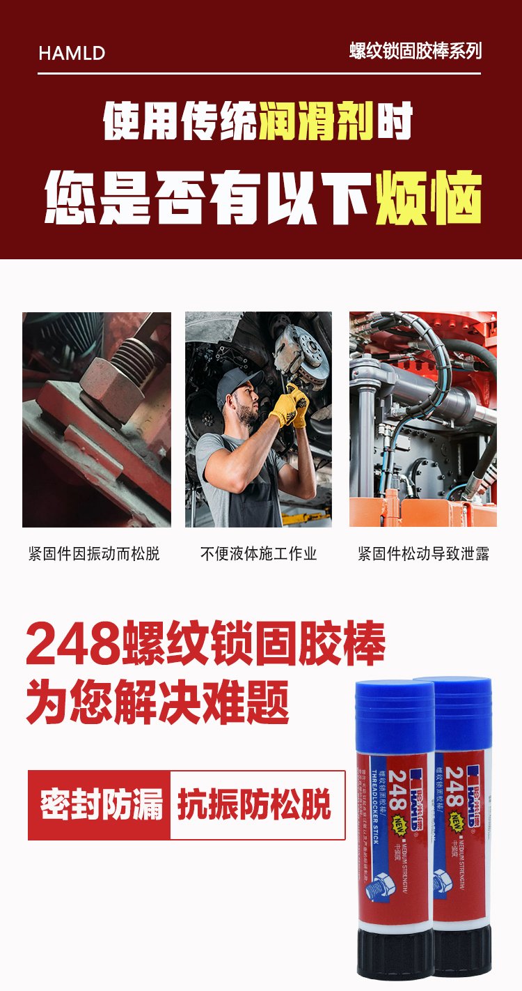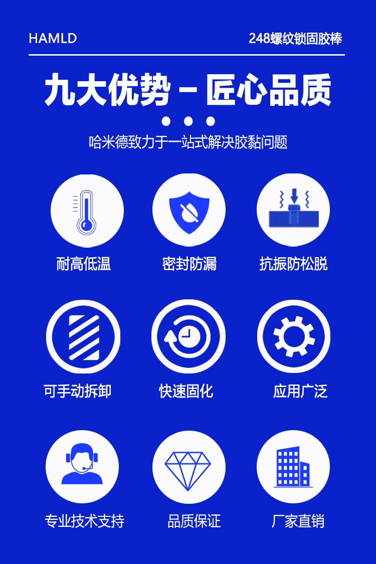 哈米德268螺紋鎖固膠棒高強度固體可拆卸螺絲膠耐高溫緊固密封劑