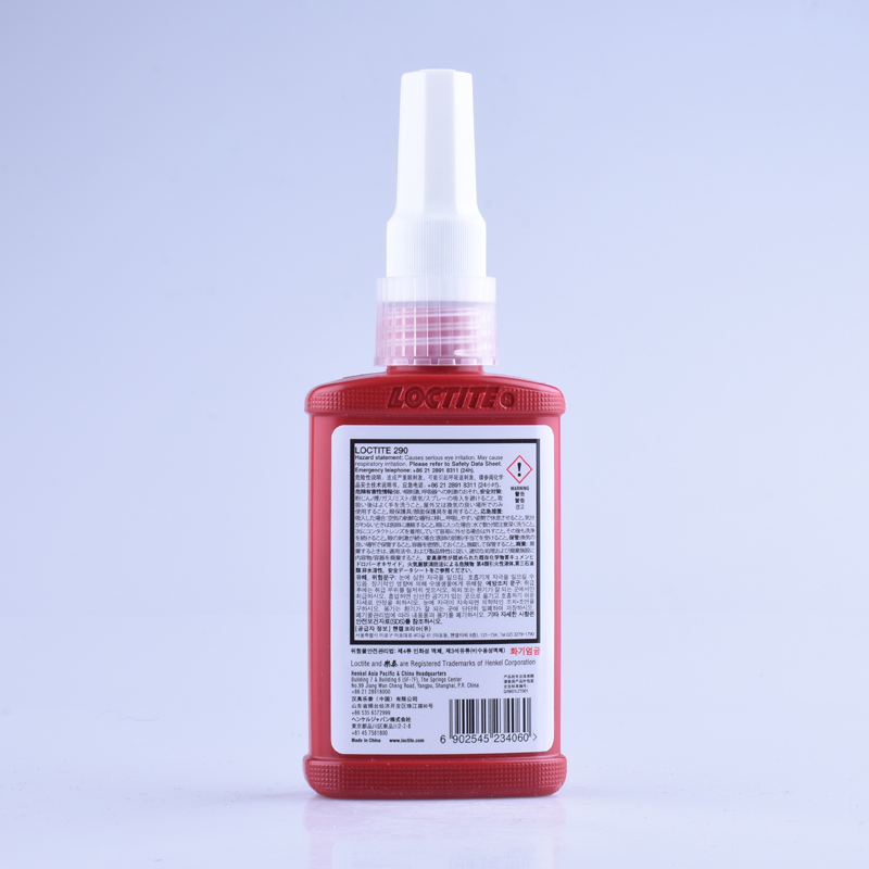 Loctite290螺栓鎖固膠,漢高樂泰290膠水是一種單組分,低粘度,中高強度,厭氧型螺紋鎖固劑。本產品在隔絕空氣的條件下,在兩個緊密配合的金屬面間固化。尤其適合用作滲入已裝配元件。由于它的低粘度特性和毛細管作用,該產品可以滲入到孔隙中,減少拆卸的需要。