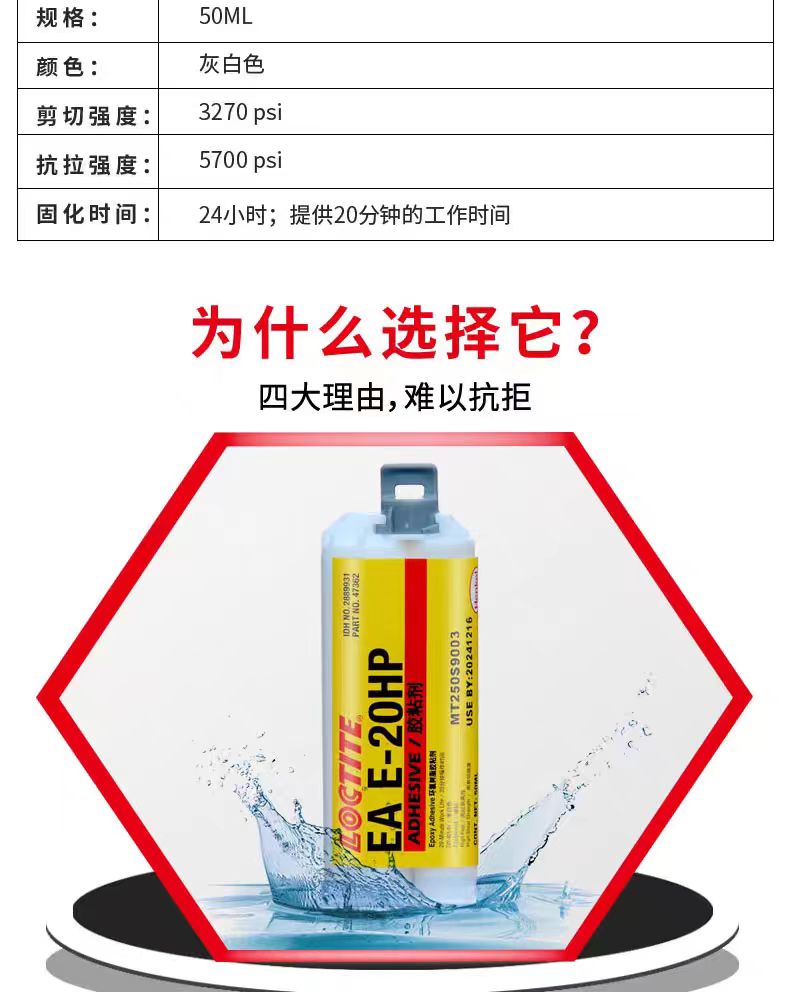 Loctite 漢高樂泰E-20HP 環氧樹脂膠粘劑增韌中等粘度操作時間長 高抗剝離能力高剪切強度混凝土石灰石膠粘劑