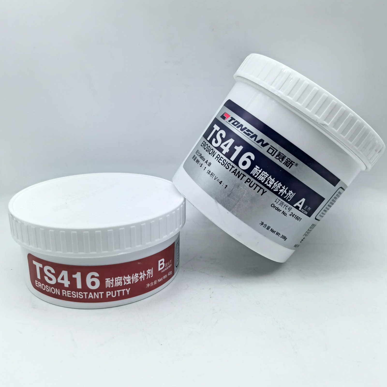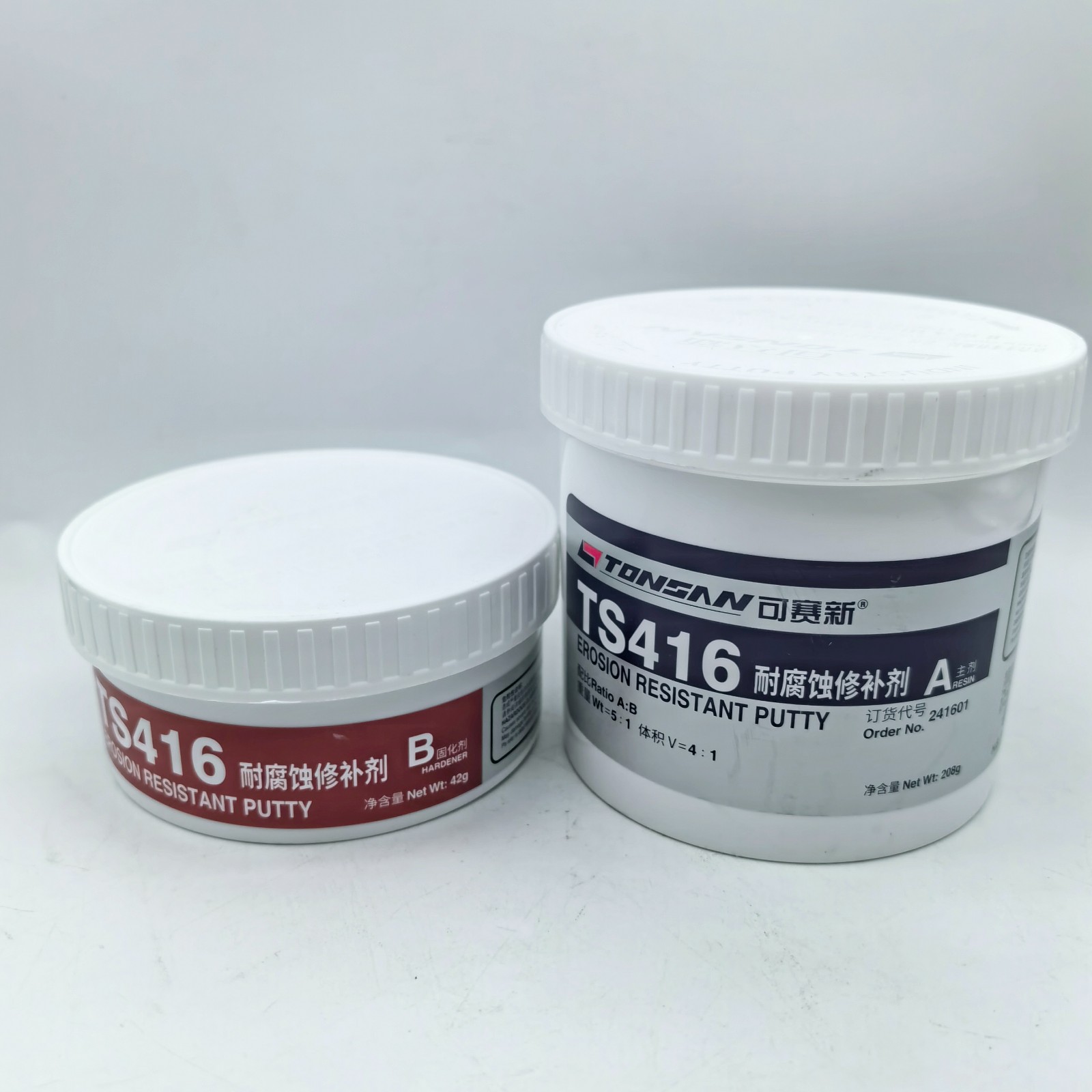 雙組份,膠泥狀,耐酸堿性能優異。用于修補局部腐蝕的泵、閥、管路、熱交換器、反應釜等。